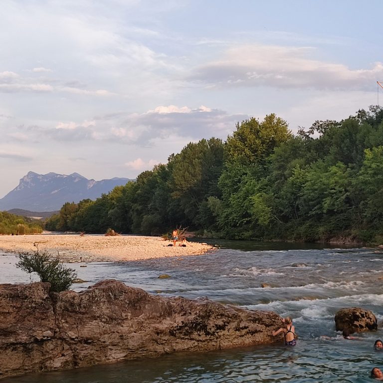 Il y a 28 millions d'années, un calcaire lacustre blanc se dépose au fond de lacs d’eau douce sous un climat subtropical. Y vivent des poissons, du plancton, des mollusques gastéropodes d’eau douces (planorbes, limnées) et des plantes aquatiques. A Crest, aujourd'hui, les calcaires lacustres blancs sont des bancs redressés qui traversent le lit de la rivière